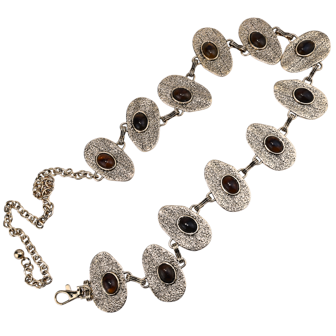 Cinto Corrente Decorativa Com Placas Ovais E Pedra