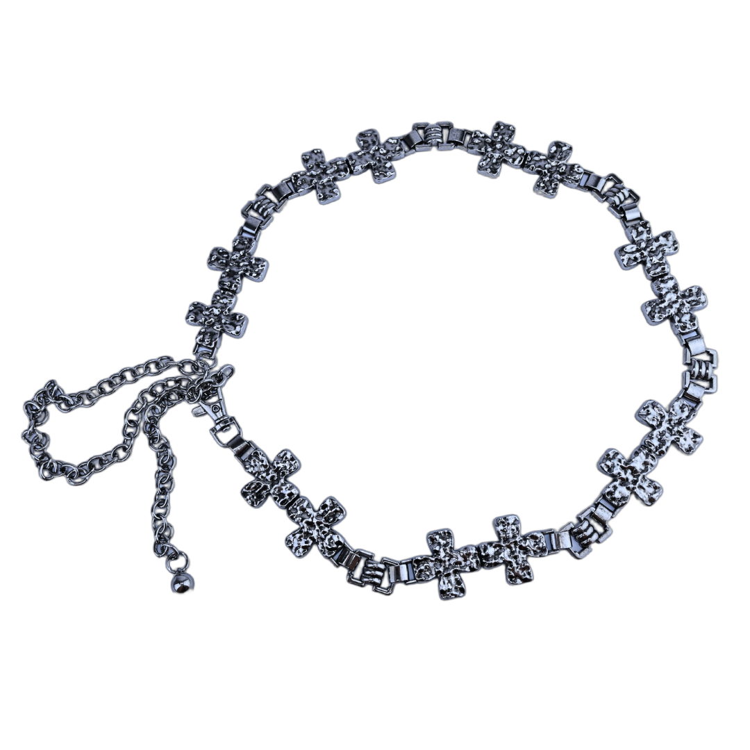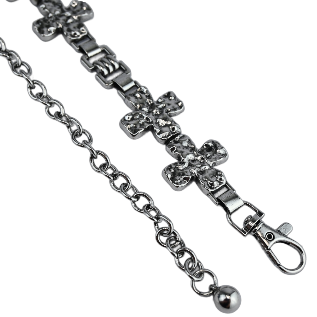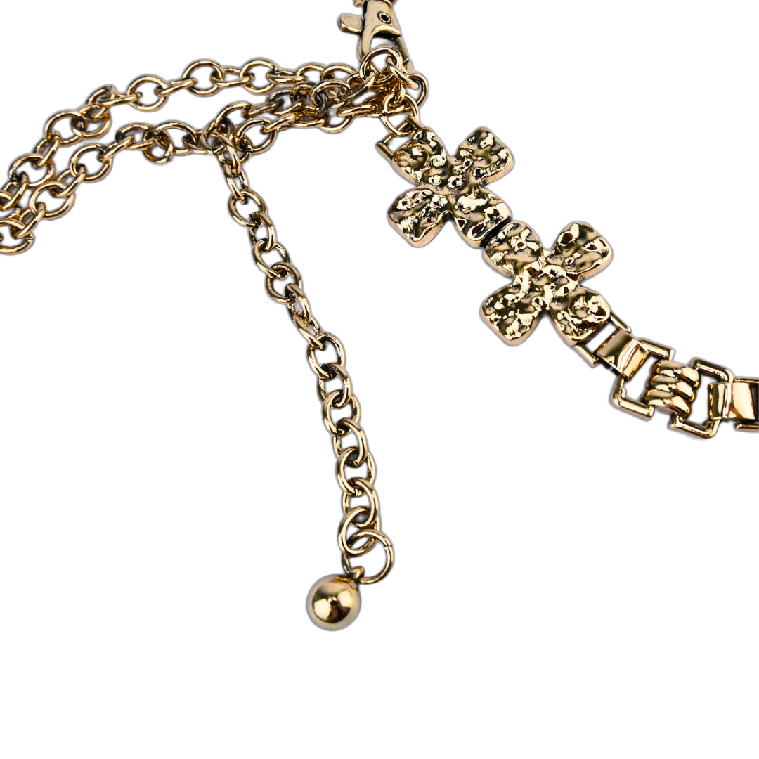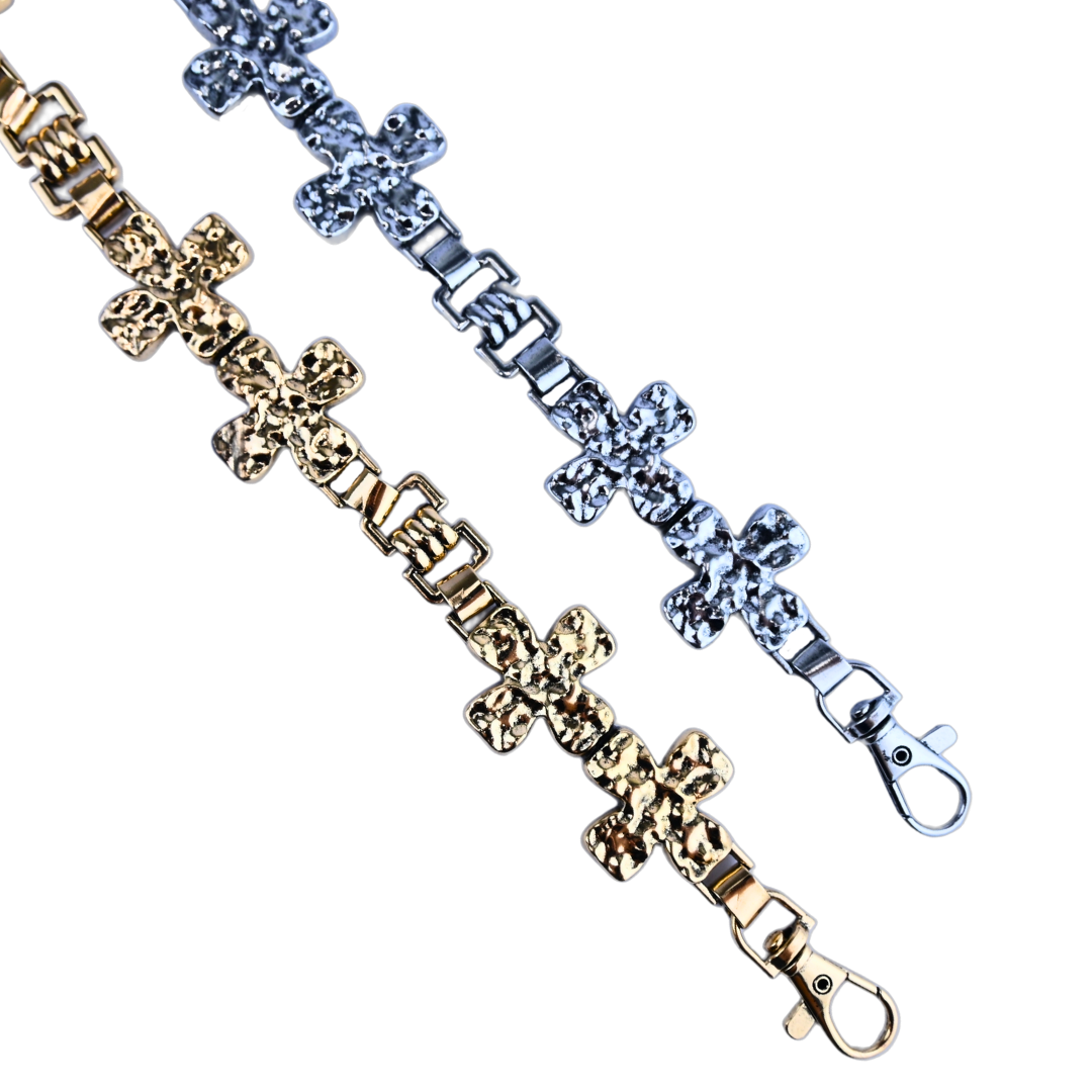 Design exclusivo: correntes com detalhes em cruz texturizada, acabamento brilhante e moderno.