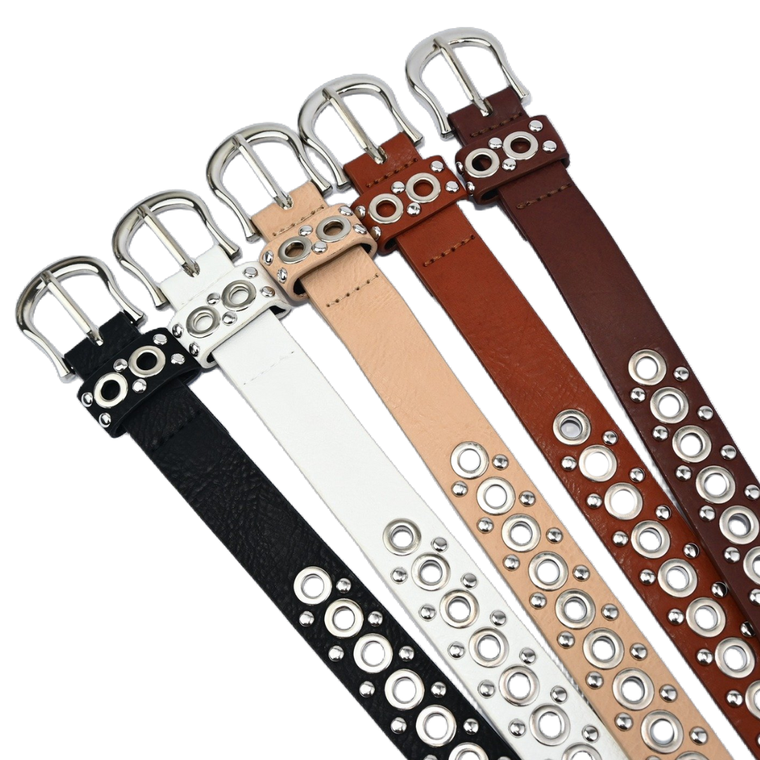 Cinto Feminino Estilo Punk com Ilhós Duplos
